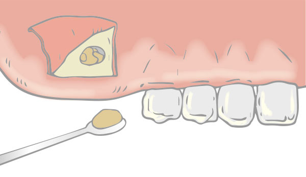 - 骨補填材を入れて、あごの骨が再生するスペースを確保します。